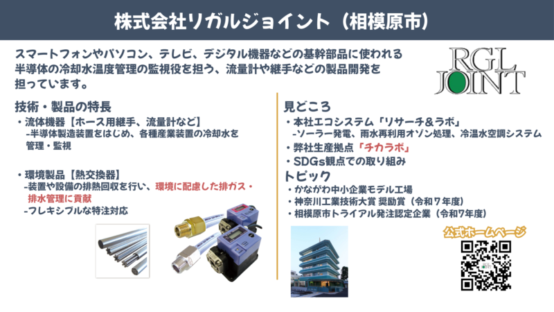 | トピック | かながわ中小企業モデル工場 神奈川工業技術開発大賞 奨励賞(令和7年度) 相模原市トライアル発注認定企業(令和7年度) |