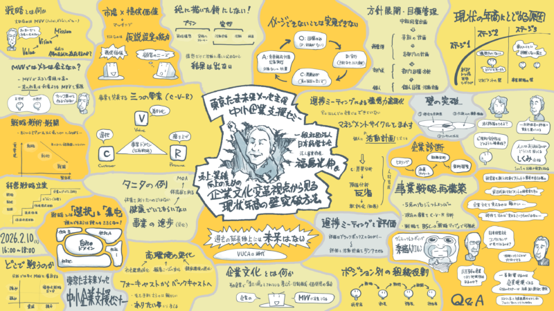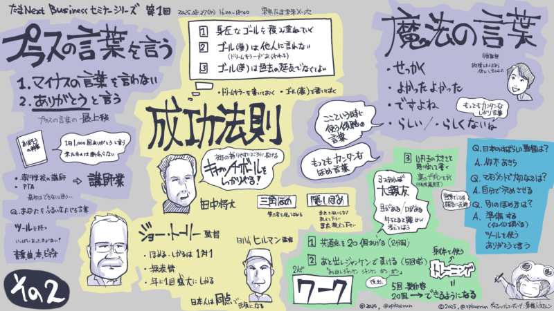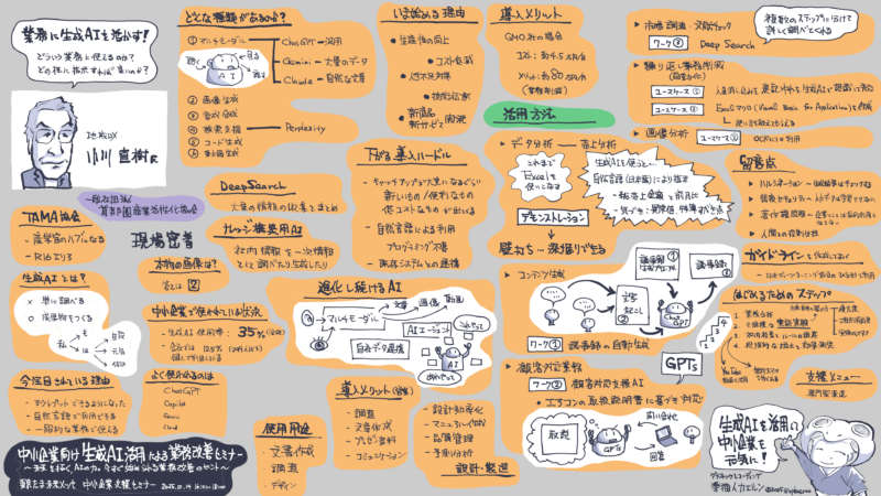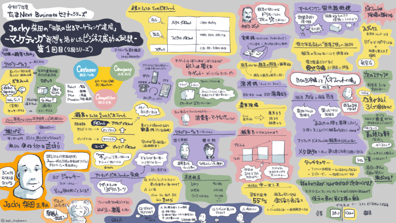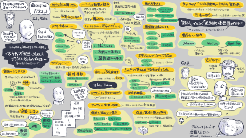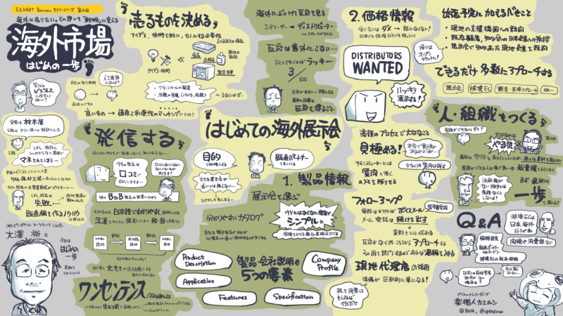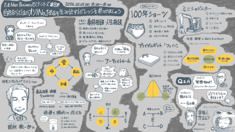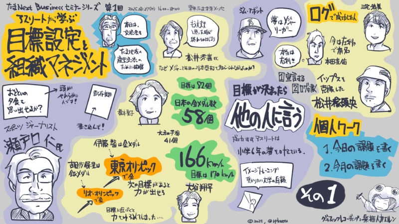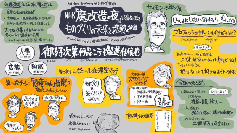 ※グラフィックレコーディングとは、セミナーで語られた内容や重要なポイントを、イラストや図、言葉を使ってわかりやすく可視化した記録です。