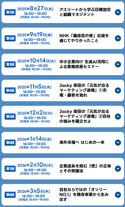 本シリーズでは、多摩地域の中小企業を主な対象に、経営や事業運営に関する多様な課題をテーマとして、全8回のセミナーを実施しました。